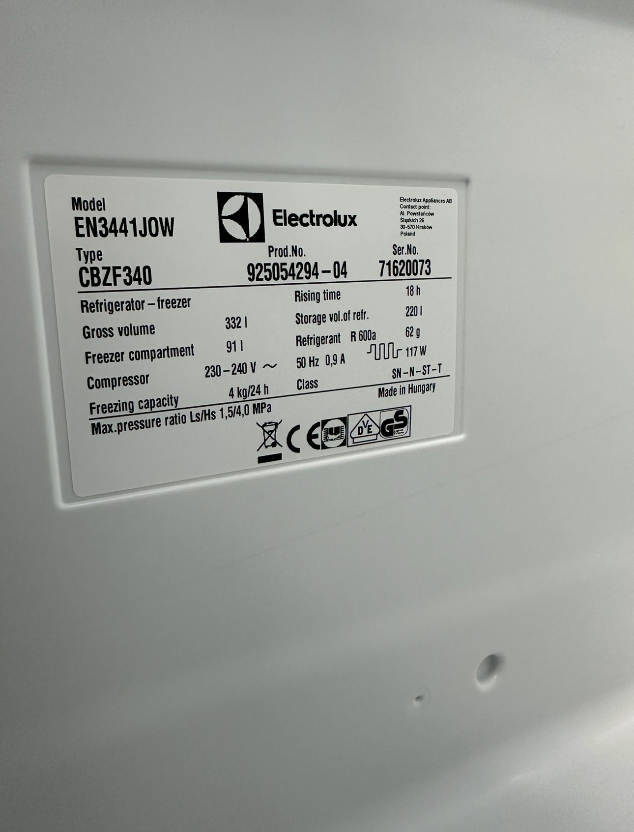 • Tyst och driftsäker Electrolux-kompressor