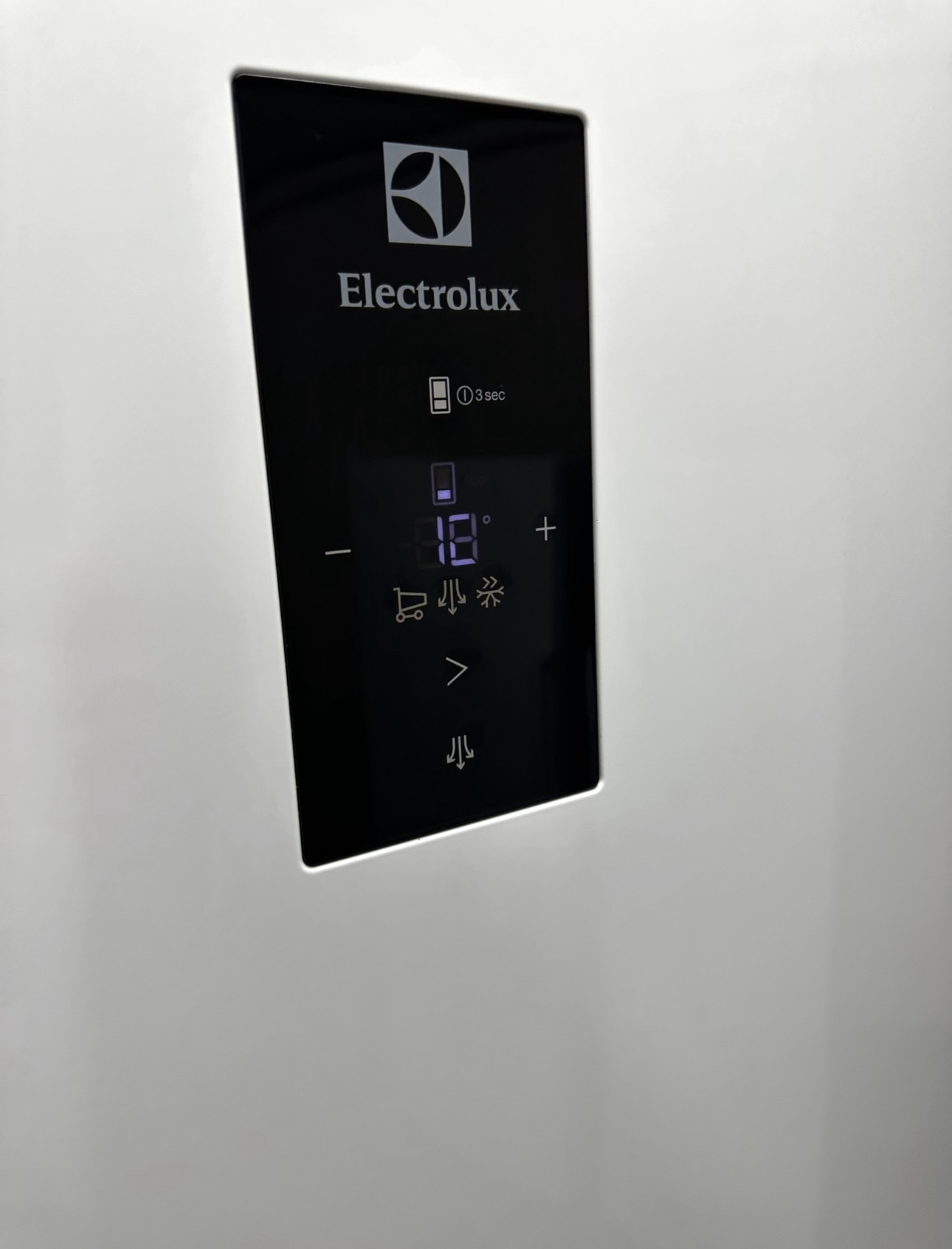 Snygg och rymlig kyl/frys från Electrolux med modern touch-display. Perfekt för hushåll som vill ha både design och funktion.