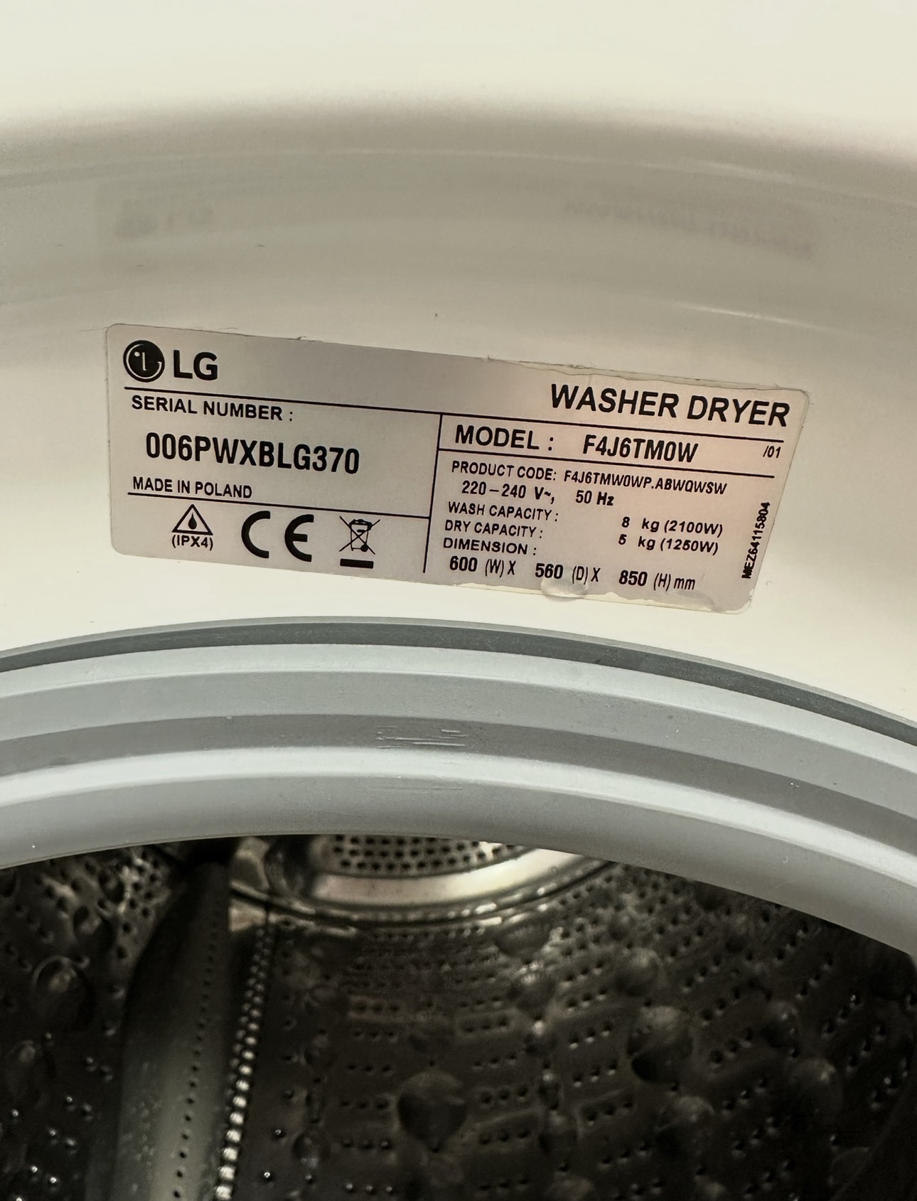 Praktisk kombimaskin från LG med både tvätt- och torkfunktion i samma maskin. Perfekt för mindre utrymmen där du vill spara plats. Maskinen är testad och fungerar som den ska ✅