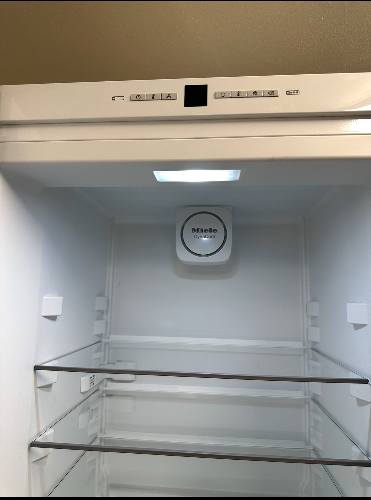 Vi säljer begagnade vitvaror i mycket fint skick. Här får du en exklusiv Miele kombinerad kyl/frys med NoFrost och DynaCool – kvalitet som håller i många år.