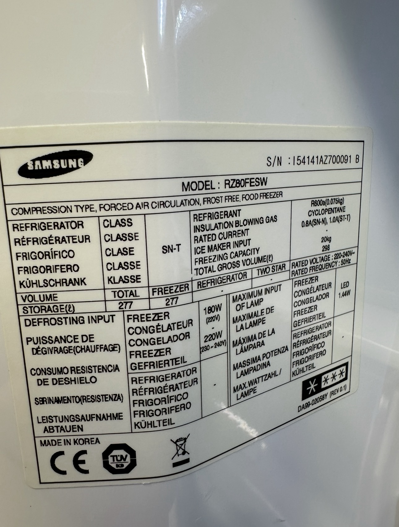Samsung frys 180 cm – No Frost – 2200 kr