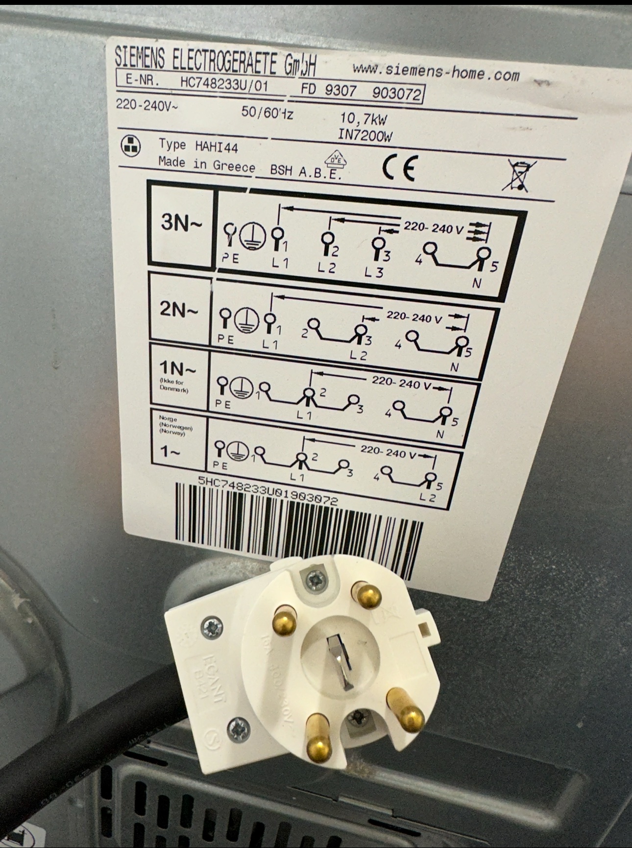 • Ström: 3-fas (se bild på kontakt)