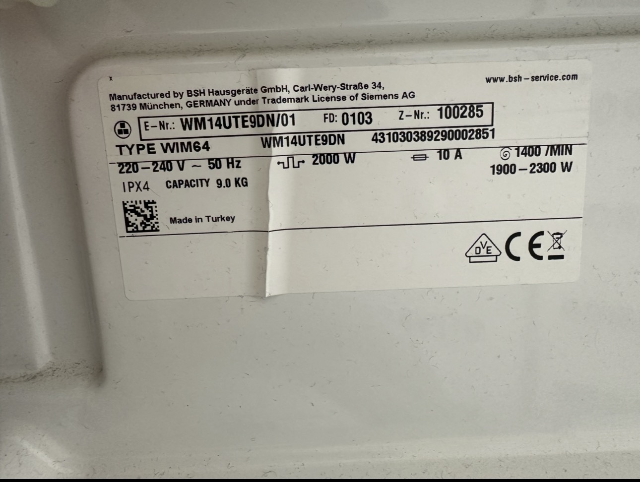 • Modell: WM14UTE9DN/01