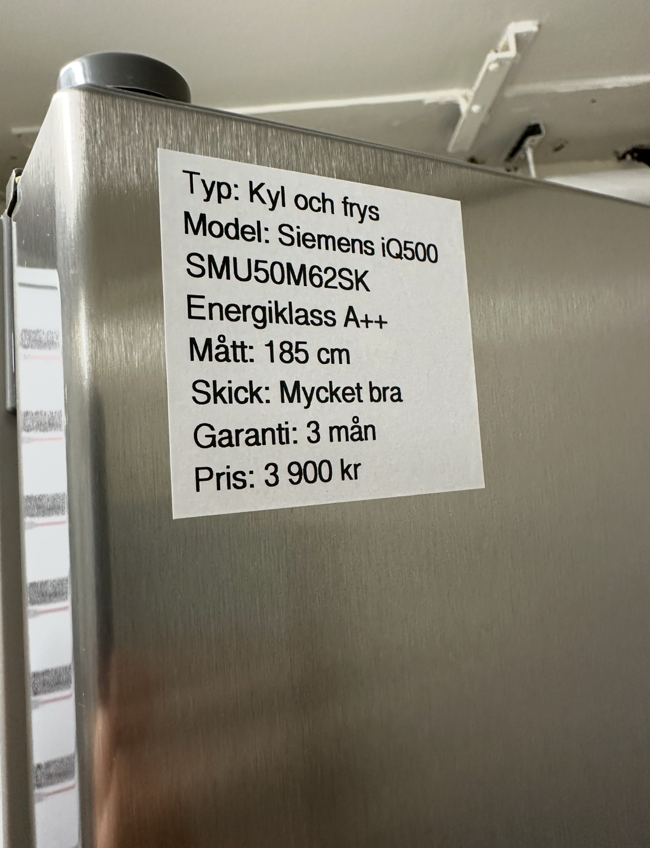 Begagnad kyl och frys från Siemens iQ500, en pålitlig och rymlig modell med stilren design i rostfritt stål. Perfekt för hushåll som vill ha kvalitet till ett bra pris.